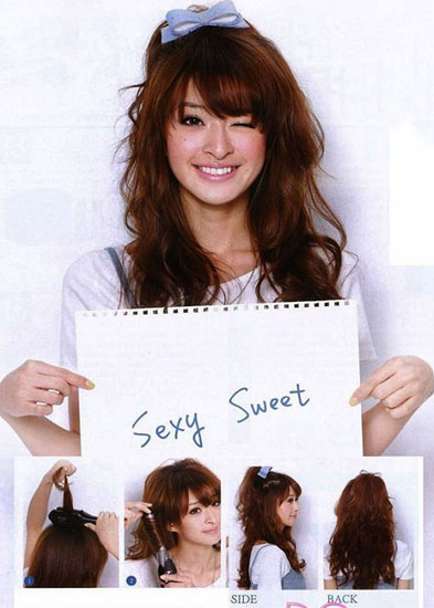把这样两加进去的侧马尾就不胡单纯只是休闲风格,而且加了大人风和甜美感的侧马尾再加上闪亮蝴蝶结发饰彩绘很搭配。