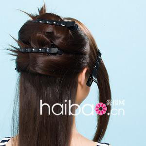 把头发上方二分之一均匀分成四等份,往上夹起。五分钟就能让头发蓬松柔顺。