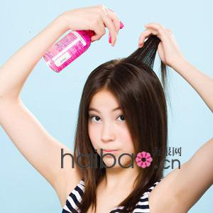 将头发一束一束拉起,把顺发液喷在发根上。只要善用发妆水,就能让发跟乖乖听话喽。