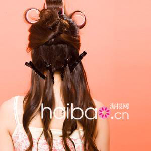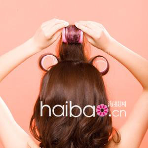 用发卷卷起头顶端的头发,均匀分成四等分卷起,成放射状。拿下来的时候不可以用力拉扯,要顺着头发弧度拿起来。