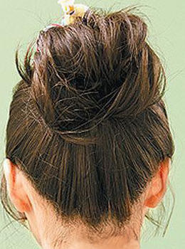 正面:高高的绑个丸子发髻,加上俏皮发饰,不但展现美好青春,也散发无限活力。