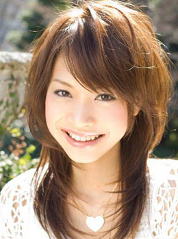 正面:十分甜美,略带蓬度的顶部和略带卷度的发梢塑造出完美的脸型,富有青春的气息。