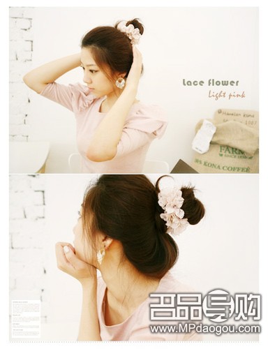 小编很喜欢的一款发圈哦,材质独特,仿真效果的花朵配以小小蕾丝边,有淡淡的素雅之感。
