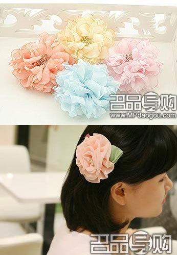 层层叠叠的大花朵不仅可用来做发饰,也可用以做胸针,效果很不错。