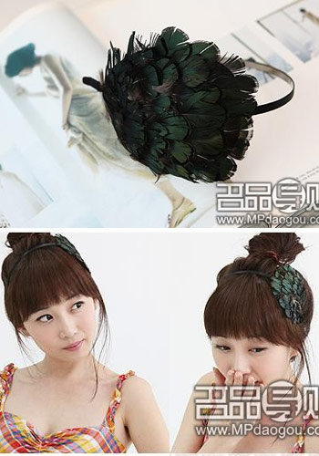 羽毛发饰隆重登场啦,趴在秀发上软软的羽毛配以端庄的颜色,是不是展示了一点高贵气质呢?