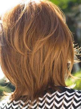 背影:呈尖状,轻轻打薄了发尾和头发的外层,营造发梢飘逸的美感,蓬松的造型既塑造了女性柔美的一面,也突显了活泼感。