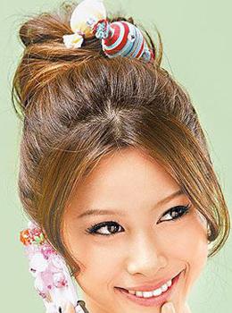 正面:高高的绑个丸子发髻,加上俏皮发饰,不但展现美好青春,也散发无限活力。