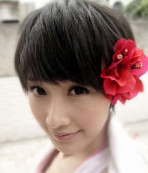 丝丝随意的秀发让邓天晴呈现出稍许的慵懒,粉紫色的花环发饰让天晴如同天使掉下凡间。