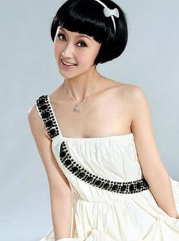 风情圆滑发髻搭配修饰完美脸型的厚重感刘海,可爱当中掺和着些知性美。