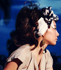 点评:把长发松松地半盘起,用独特的发带装饰,犹如昆剧里走出的花旦,充满古典的温柔婉约。