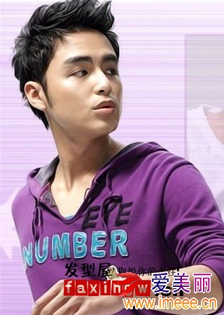 此款男士发型要求:轻薄的斜刘海+鲜明立体短碎发令秀发松软有质感看上去既清爽又简单的效果!2009年男士流行发型8、唐禹哲发型