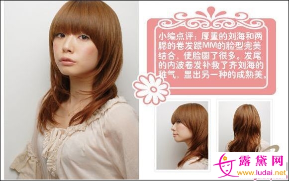 厚重的刘海和两腮的卷发跟MM的脸型完美结合,使脸圆了很多。本文来自