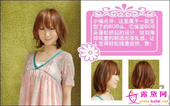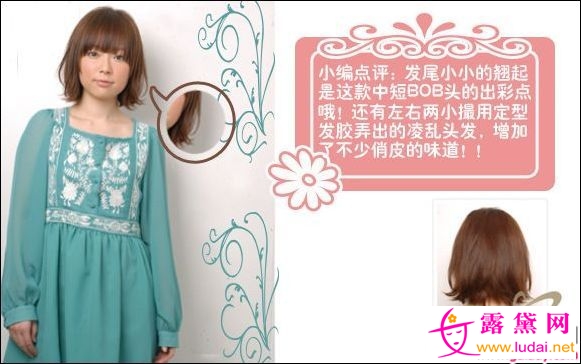 发尾小小的翘起是这款中短BOB头的出彩点哦,还有左右两小撮用定型胶弄出的凌乱头发,增加了不少俏皮的味道。