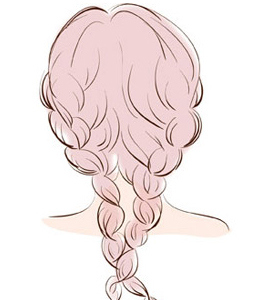 Steps1:头发分成两大部分,然后轻轻编成两条辫子。