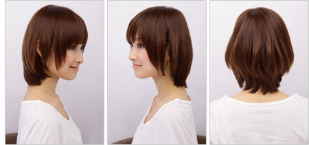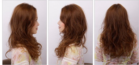 侧背面效果:我们可以看出发型的头顶部分是非常整齐的,特别之处在于发梢,如微波般撩动人心,就算只从侧后面看,也能感觉到拥有如此秀发的MM不但漂亮,还非常的具有知性美。