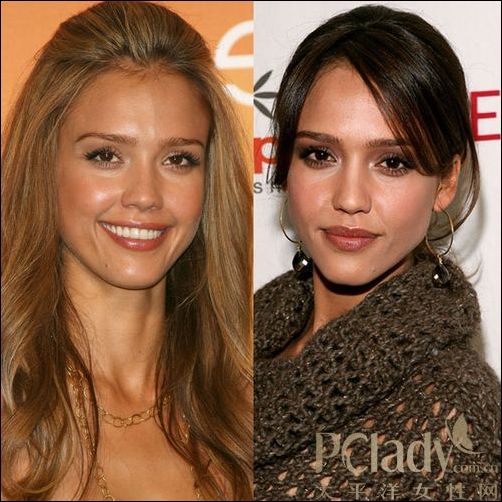 从沙滩宝贝到知性淑女,杰西卡·奥尔芭(Jessica Alba)也从金色大卷发转换为巧克力色长直发,轻轻挽起,淑女气质尽现。