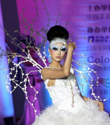 7月5日,北京举行第14届中国国际美容美发节上,中国发型化妆艺术研创中心发布了2010中国发型化妆潮流趋势。中新社发 陈晓根 摄