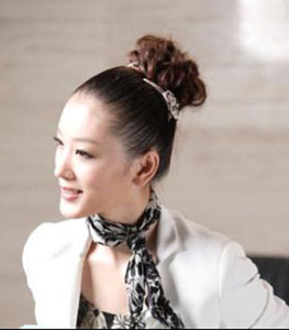 再来讲一款职场女性必备的发型和妆容。职场女性要显示出干练和优雅气质,一丝不苟的盘发是最合适的。如今追求时尚美丽的熟女们可不再选择以往老气横秋的盘发了。如图中女主角,将头发高高盘起,露出光洁的额头,再戴上镶嵌施华洛世奇水晶的发饰品,点缀黑白相间的丝巾,显得精明干练,优雅迷人,这样的职场丽人,哪位男士不心动呀。