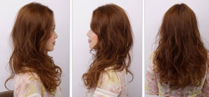 侧背面效果:我们可以看出发型的头顶部分是非常整齐的,特别之处在于发梢,如微波般撩动人心,就算只从侧后面看,也能感觉到拥有如此秀发的MM不但漂亮,还非常的具有知性美。