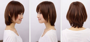 正面效果:有点bob头的feel,但没有了bob头的过分厚重感,摆脱了俗气感。帖服的发型顶部和略蓬松的发型尾部很好的组合成一个极具优雅特质的发型,表现出女子文静而聪颖的品性。再配以略偏向右手边的短刘海,避免了齐刘海的幼稚感,显得知性而不会过分成熟。怕成熟又想变得知性的MM可以试试这款哦!
