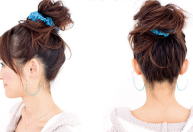 将头发束在头顶,越高越好,不过建议不要学杂志上模特那样,垂直头顶有点怪。接着是用手指将头发梳理出纹理。将头发以花团形状,花团大小就有你自己决定咯,最后用发卡固定即可。