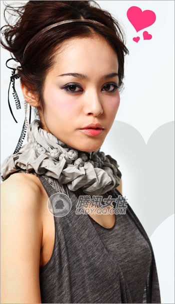 凌乱有致的束发点缀上别致的发带,搭配深邃迷离的灰色烟熏妆容,完美演绎时尚模特般的冷艳魅力。