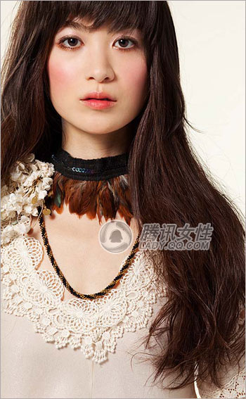 细腻质感的刘海搭配飘逸的微卷发尾,与充满少女气息的清新妆容,打造仿佛芭芘娃娃般可爱灵动气质。