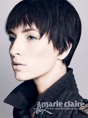 推荐理由:短发要做出瘦脸的效果真的不容易,如果真的做到了瘦脸,女性的柔美感似乎又丧失了。那么就试试“置之死地而后生”,既然没有了柔美感,就改走中性路线吧。例如这款短发,利用贴脸的短发让脸蛋两侧的肉肉与头发融为一体,脸蛋马上小了一圈,干脆爽直的短发还烘托出了帅气的气质。