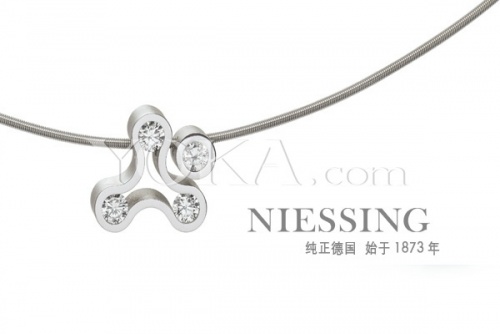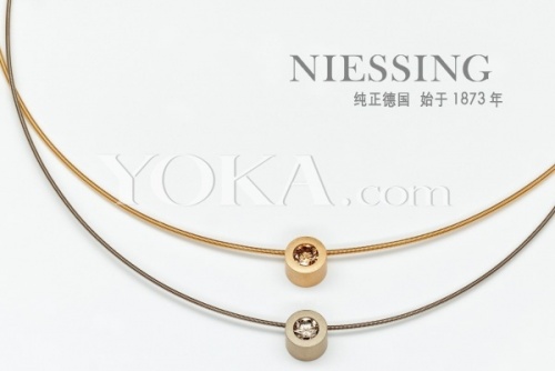 铂金散发出轻柔、冷峻的光华,强调着此款项链的简单优雅;Niessing创意变化的项圈设计为佩带者留下了十足的自由发挥空间。精致的单颗钻石表现独立而自信的态度、成组搭配则带来和谐欢悦的视觉享受。