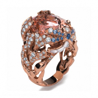 黄金及白金上镶嵌钻石及有色宝石、珍珠,色彩鲜艳,让珠宝呈现出不透明或是半透明的光泽,却是极其自然。
