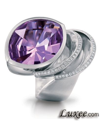 镶嵌紫水晶和71颗明亮琢型钻石。在2009 Inhorgenta Europe国际珠宝展览会上,该款设计荣获国际铂金协会(PGI)德国分会授予的鸡尾酒铂金戒指类"2009最受欢迎铂金设计"大奖。