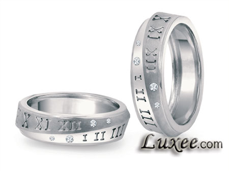 镶嵌有比利时碎钻,缎面般的典雅光泽令对戒熠熠生辉,刻在戒臂上的罗马数字愈发凸显这份合二为一的美好爱情。镌刻罗马字母的铂金镶钻婚戒是甜蜜爱情与永恒承诺的最佳见证。