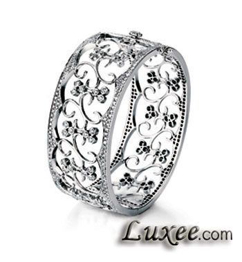 铂金镶钻花纹藤边手镯(钻石总重5.58克拉)
