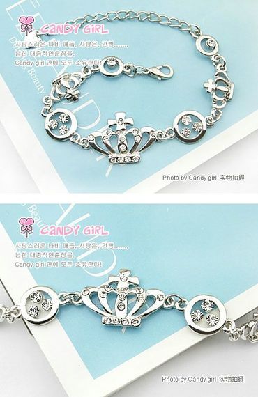 皇冠手链,韩味十足的皇冠造型,再加上满满的闪钻,非常的耀眼哦。