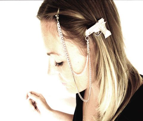 手枪发夹:将刘海用blingbling的手枪别起来,“乒”的一声射出一颗子弹。