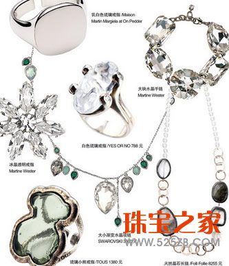 如果你还是喜欢大而整的透明材质首饰,那么让它远离你的颈部肌肤,装点在指间,既不会抹杀掉水晶的透感,同时还满足了佩戴者的喜好。