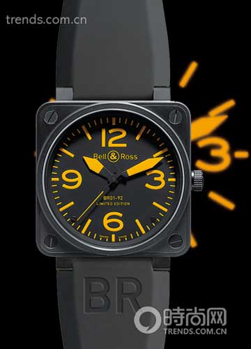 Bell & Rose的BR01简单的表盘上的大号时标均使用了荧光涂层