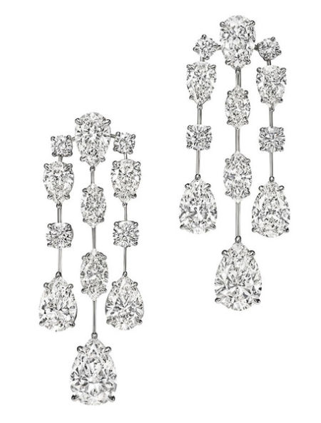 用大小不一的橄榄形钻拼接在了一起,让整一副耳环看起来却有着多种钻型耳环的丰富感。