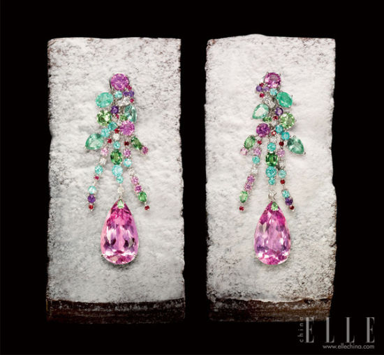 继黄钻之后,粉钻是2012一大热点,这对粉色耳环极富女人色彩。