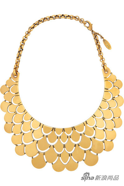 同样是彼得潘领的追随者,Roberto Cavalli的鱼鳞片状项链也是一件时尚的金属领子。