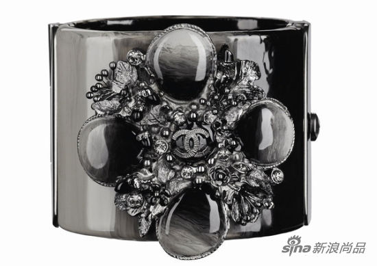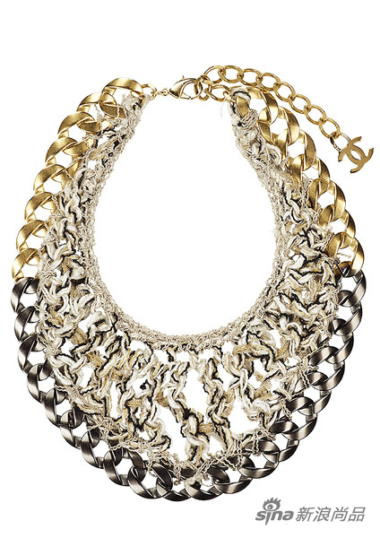Chanel运用哑光黑色、金色和银色打造了这样一款夸张的超大号项链,绝对是一件时髦单品。