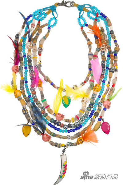Erickson Beamon这条印第安风情的项链很适合海边度假时佩戴,羽毛、骷髅、匕首,各种时尚元素都融合在这条项链中。