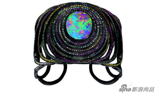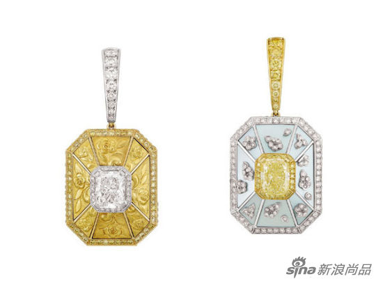 Chanel的Soleil d’Automne手镯和耳环运用白色和黄色构成了反差的美感,仿佛是一白一黄两个盾牌,盾牌上的雕花和钻石精致细腻。