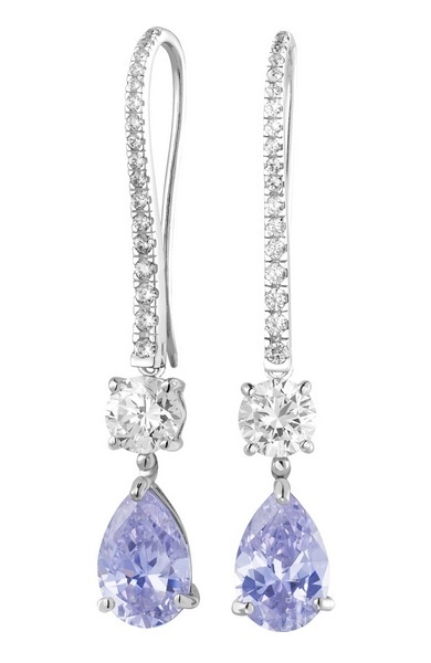 Romanza熏衣草色及白色晶钻配纯银镀铑耳环
