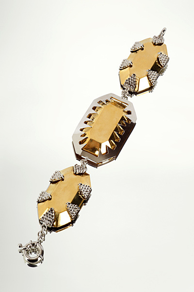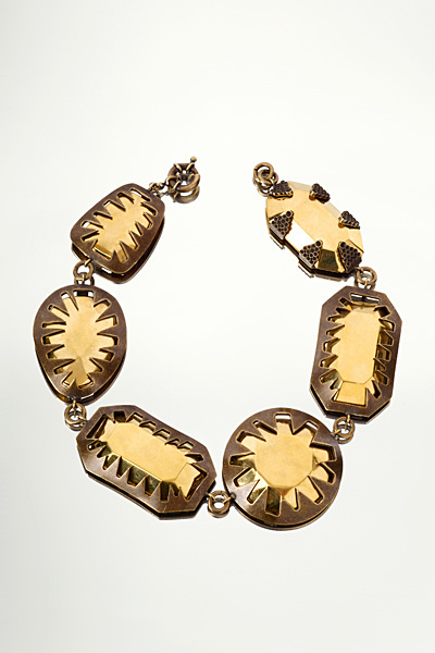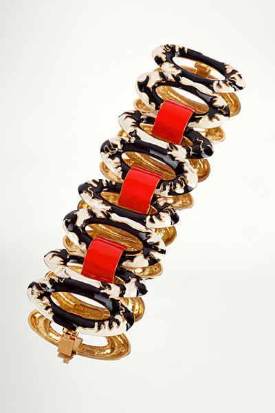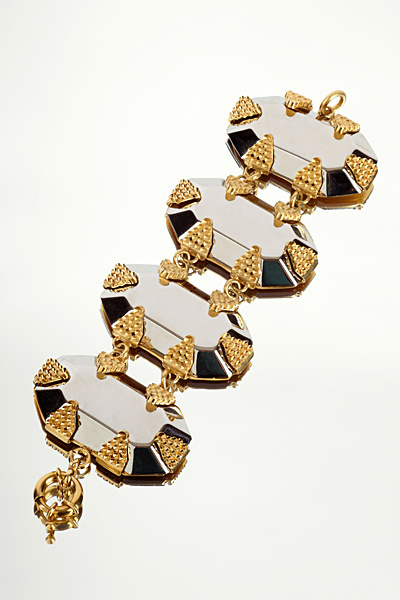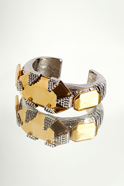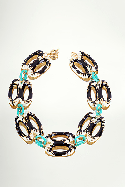 意大利设计师品牌Giambattista Valli 2012春夏系列珠宝以简洁的设计和粗矿的风格展现都市摩登女郎大气婉约的时尚态度。有别于常见的宝石或者晶体镶嵌,Giambattista Valli的设计师选用了与首饰相近材质的切割体镶嵌,造型华丽却不失个性特色。