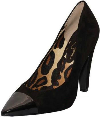点评:尖头高跟鞋已经被浅口尖头,并且是锥形鞋跟的高跟单鞋所取代,双重材质的拼接又成为一个时尚亮点。