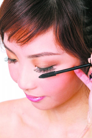 3 待假捷毛的胶水干透后,扫上黑色的睫毛液,加强浓密效果。