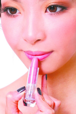 6 最后涂上淡粉红色的唇膏,即告完成。