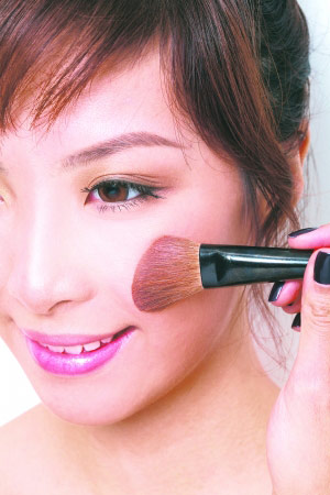4 之后在面颊位置,斜斜扫上带有古铜效果的胭脂,塑造出健康自然的气息。