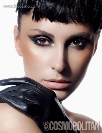 灰色烟熏妆很诱人,窍门是先用含闪光成分的沙土色或奶白色的眼影轻扫整个眼睑,这样一方面可以防止眼皮出油弄花眼妆,一方面提亮整个眼窝让烟熏更自然。之后用深灰色的眼影沿着睫毛根部浓浓地描绘一层,再用棉棒晕染开。